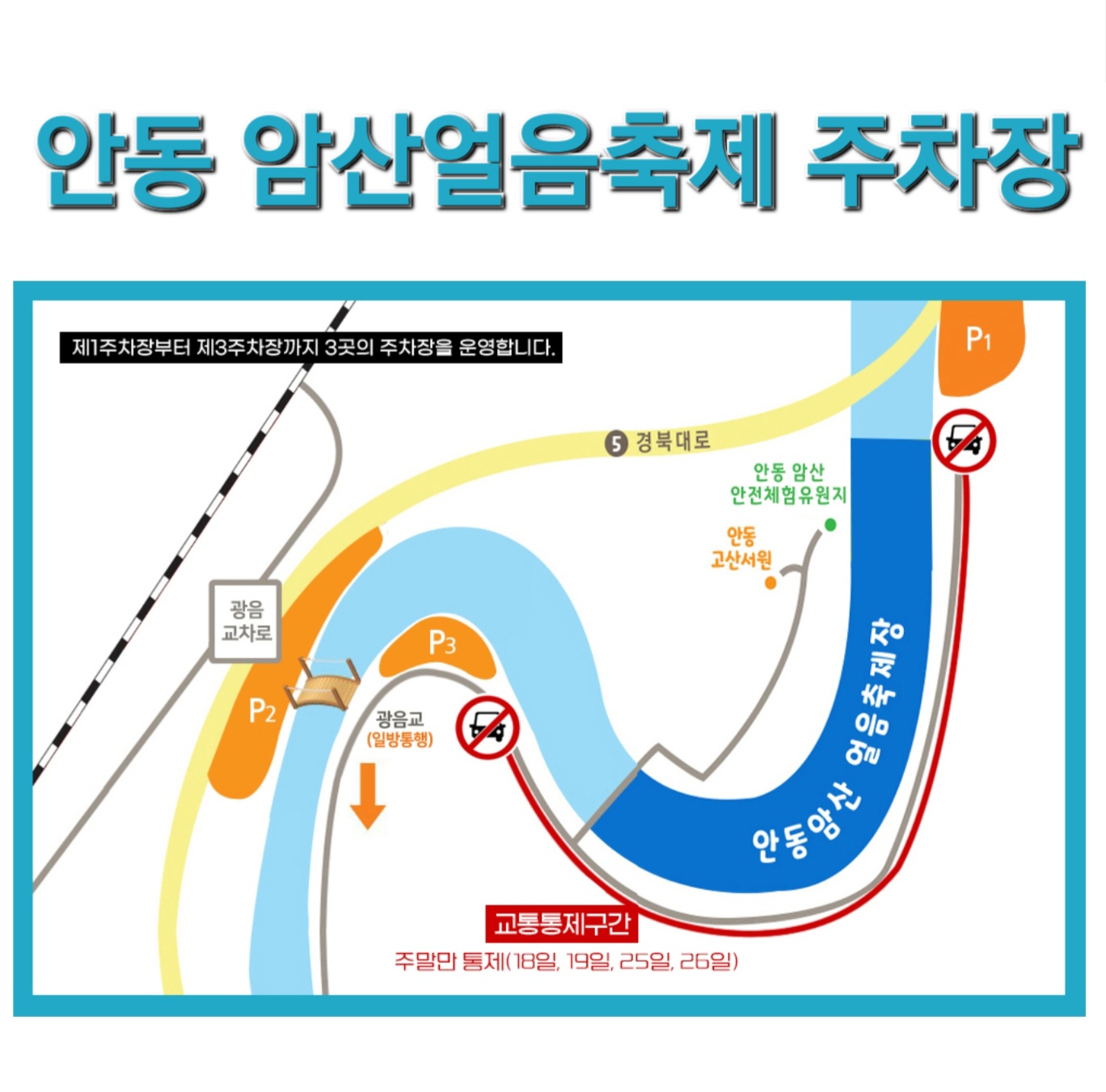 안동 암산얼음축제, 주차장 안내, 찾아오시는길
